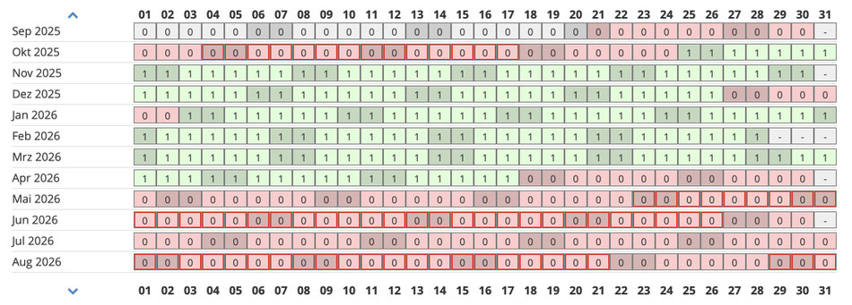 Buchungen sind nur wochenweise von Samstag zu Samstag möglich.